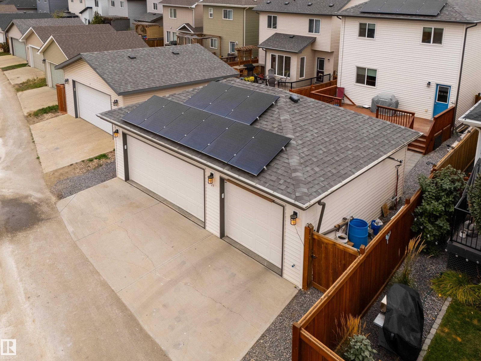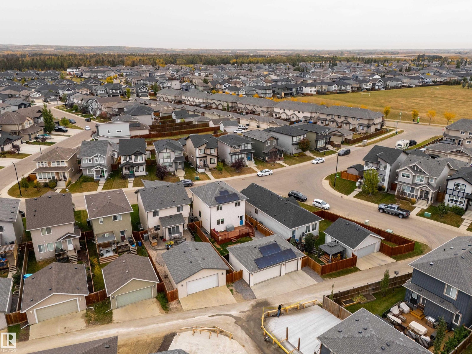 TRIPLE HEATED GARAGE with back lane access! Located in the family friendly community of Harvest Ridge awaits a meticulously taken care of 2-storey with the sought after fully finished triple garage in Spruce Grove. This RARE home feat. an open concept design with 3 beds, 2.5 bath with over 1,500sqft of living space above grade, a sleek white kitchen with upgraded countertops, stainless steel appliances w/ induction stove, durable vinyl plank flooring, 9ft main floor ceilings, solar panels on the home & garage, water softener system, HRV unit and so much more! Upstairs boasts 3 generous bedrooms feat the primary suite with walk-in closet, MDF shelving, 3 pce ensuite and the basement is ready for you to develop how you see fit! Location is ideal for the active family being steps away from walking trials, schools, fields to play in, the Tri Leisure Center, MAJOR amenities and easy access to commuter roads. This one is sure to TOP Your list!