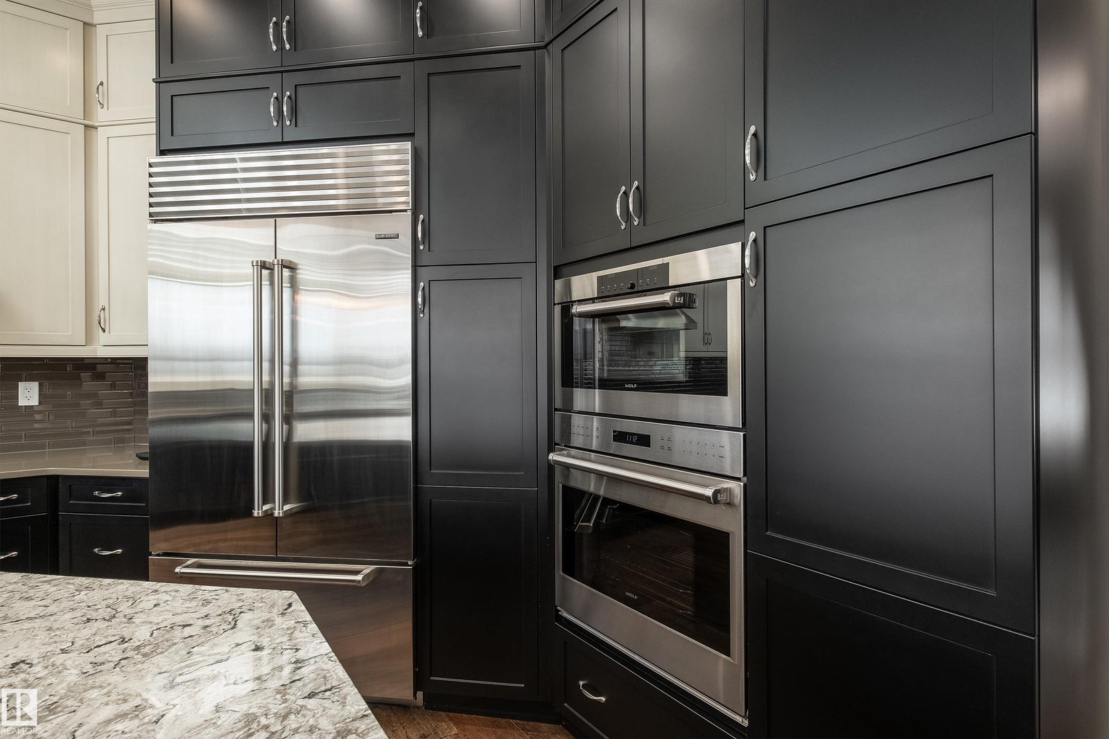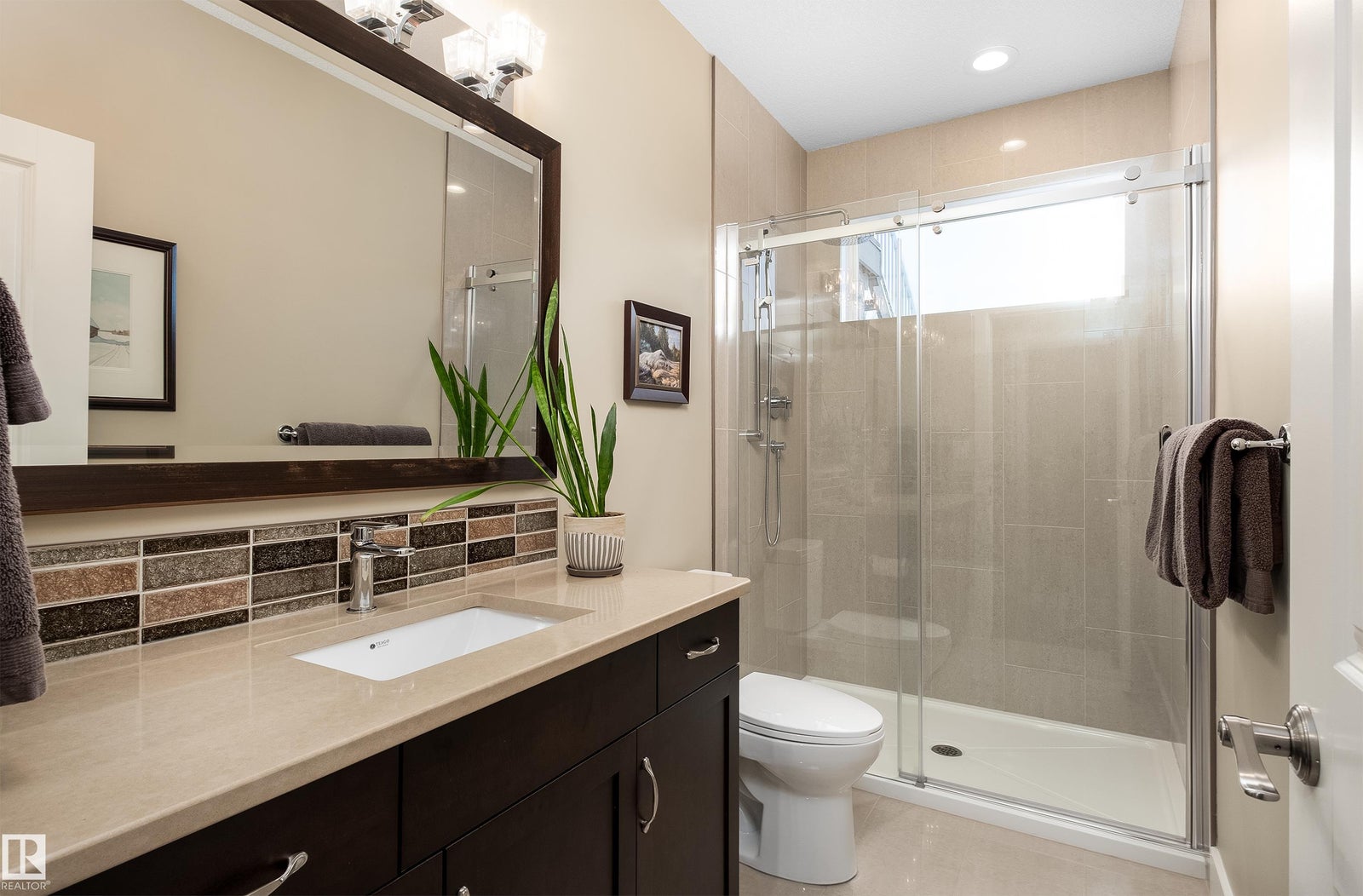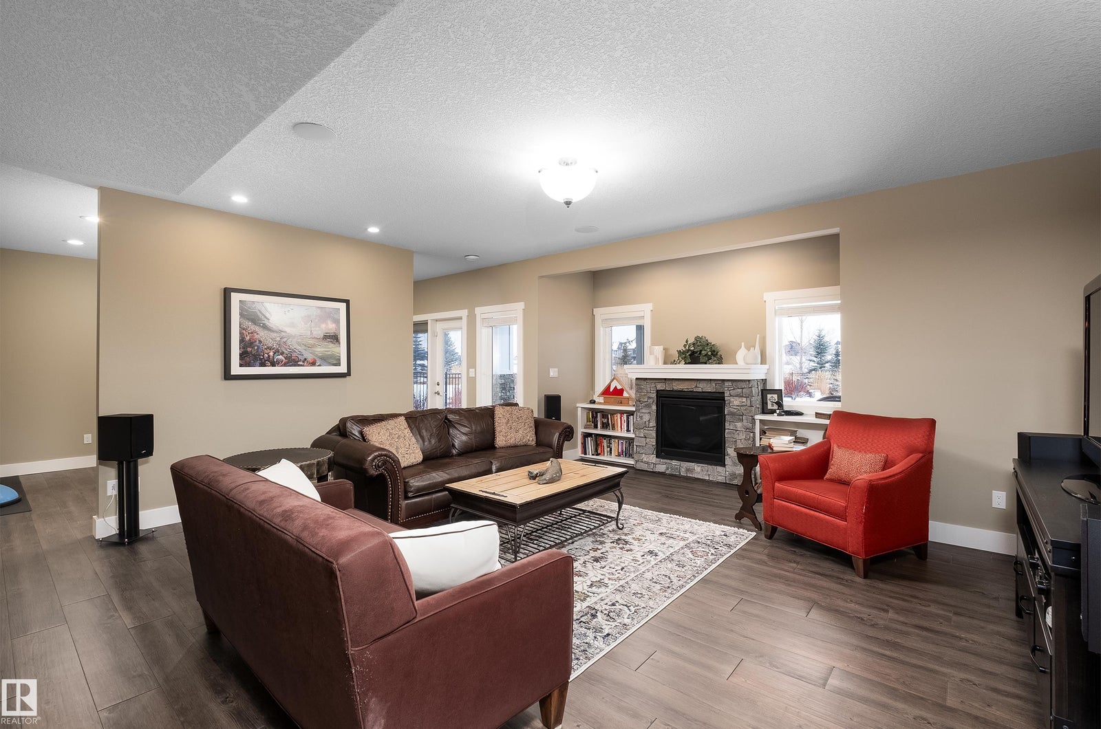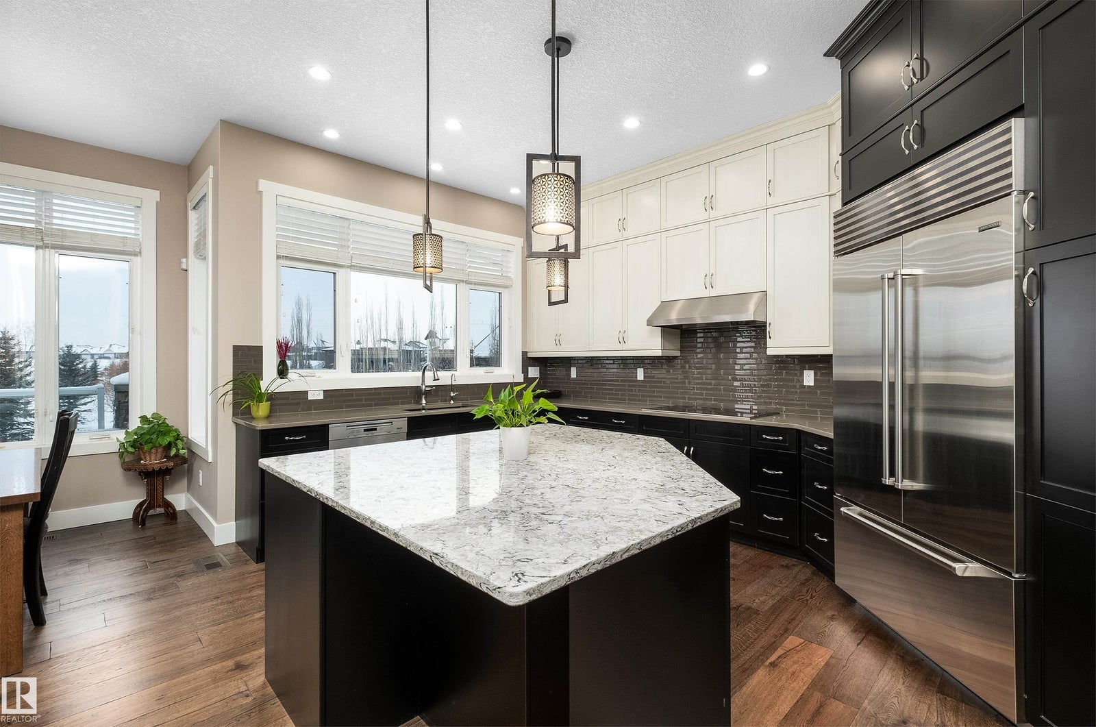 Nestled in the Genesis on the Lake community awaits a truly stunning walkout bungalow that's ready for new owners to call it home. This original-owner home has been meticulously designed and is packed with upgrades. Featuring 10ft ceilings on the main floor, rich hardwood, a chef-inspired kitchen w/ floor to ceiling cabinetry, Wolf and Miele app, wine fridge, double sided fireplace, central A/C and vac, RO system, heated garage, and main floor laundry. The primary retreat welcomes you w/ double doors and leads to your spa-like ensuite with heated flooring, deep soaker tub, generous tiled shower and dbl vanities. Downstairs glows w/ natural light, in-floor heating and hosts a kitchenette, two bedrooms, bath, lounge and workout room plus over 400sqft of storage space. Outside features a beautifully landscaped yard with sprinkler system. This home is cut from a magazine and is perfect for a couple looking to downsize without compromising quality, families with older children or multigenerational living.